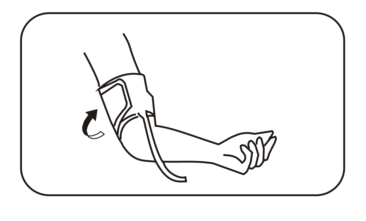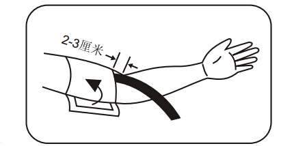 注意:袖带应当舒适地缠绕在手臂上,与手臂间没有间隙,防止过紧或过松,以可以伸进2个手指为宜。