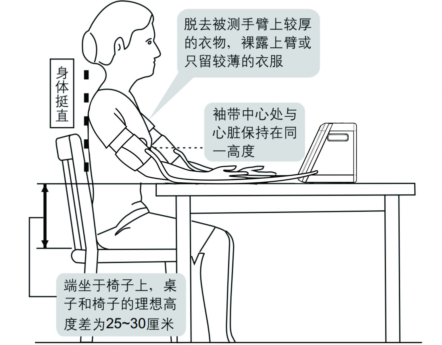 注意:上臂应裸露或仅穿贴身薄衣,过多衣物会导致测量结果不准确。